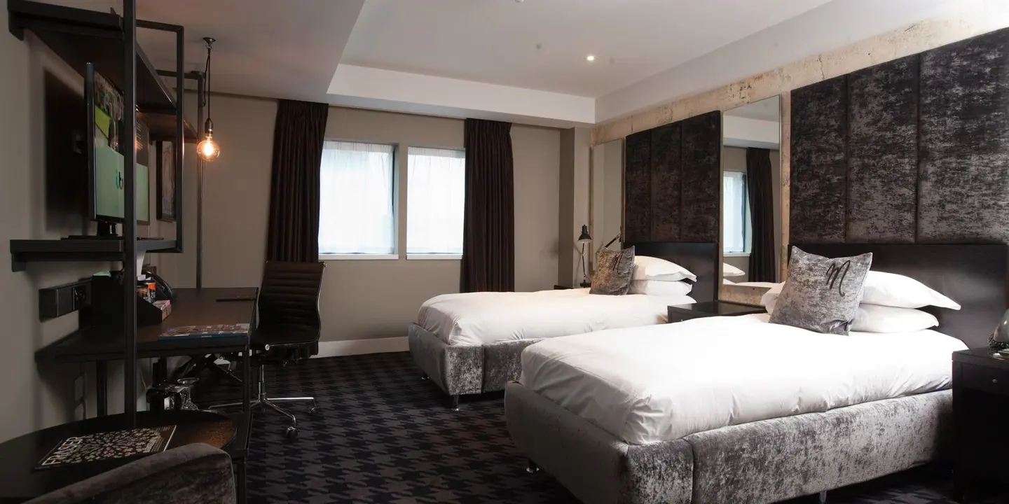 Our stylish standard hotel rooms in Birmingham come with twin beds, en-suite with bath and shower and the full set of Mal ingredients. Two's company even if it's purely platonic or strictly corporate.