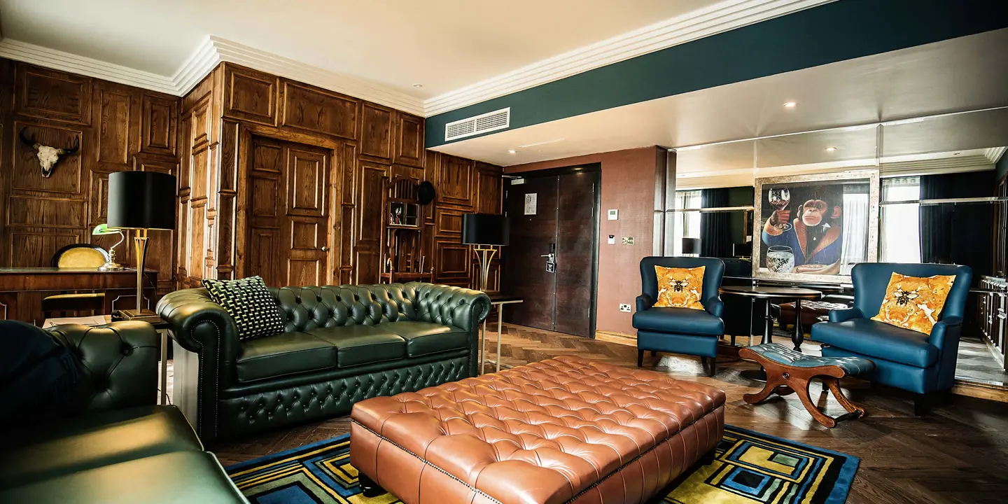Enjoy the drawing room, rich with dark wood and leather, while enjoying a tipple from the globe bar. A tasteful mix of antique and beautifully crafted modern furniture adorns the room, from the lounge area complete with quirky Malmaison touches to the heavy writing desk with inspiring views overlooking the city.