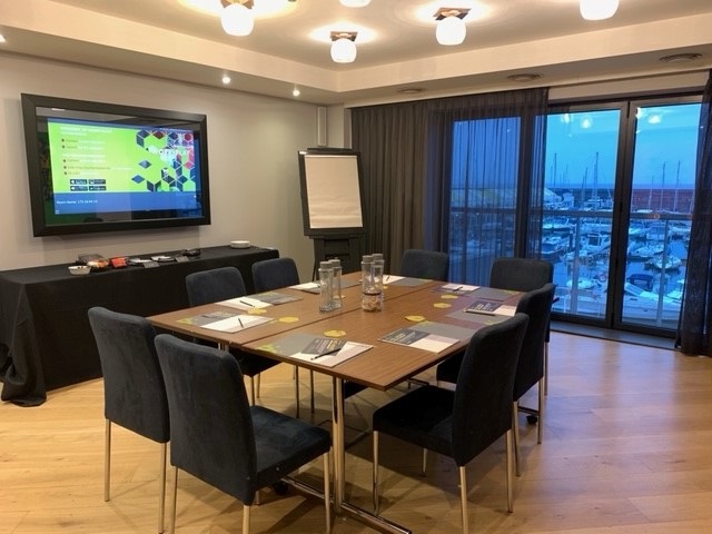 Theatre - 28 people | Boardroom - 16 people | U-shape - 14 people | Cabaret - 18 people