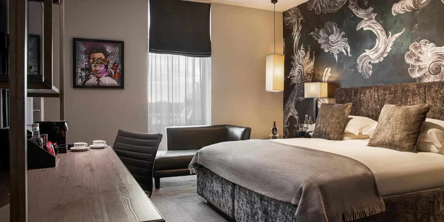 Spacious Club room. Relax and enjoy being by the water in this stylish Club room with a king or super king bed, en-suite bath and monsoon shower (some rooms have a shower only) and partial views of the Mersey or liver building.