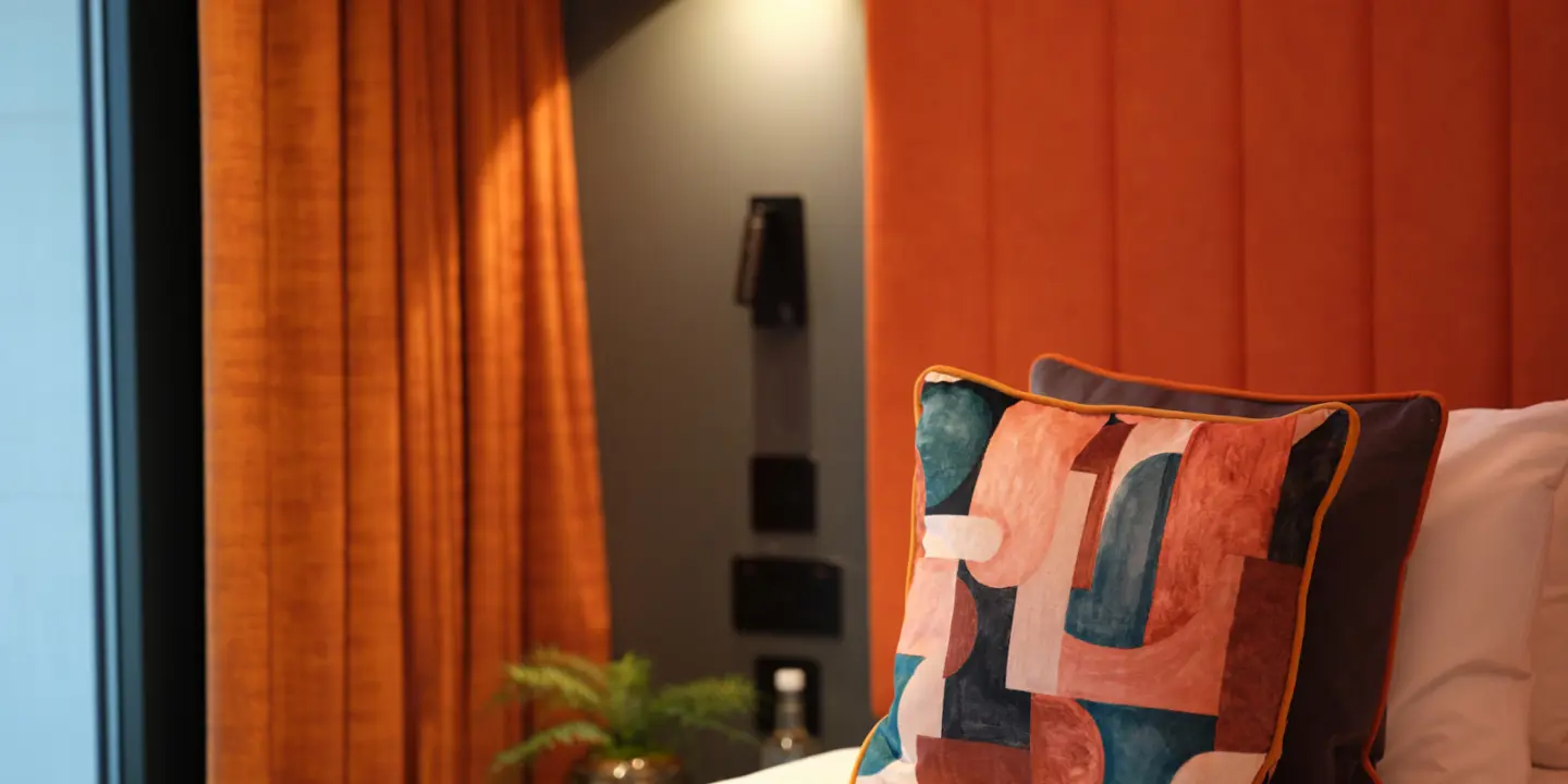 Our guestrooms pay homage to the retro design of the 60s and 70s, referencing the iconic G Plan furniture of this era, a benchmark for classic British design. Each room talks to the exterior of the building design, complimenting the harsh, brutalist designs of the exterior with bold patterns, powerful colours, strong materiality and striking artwork. Luxuriate in style with Arran Aromatics toiletries as standard, and spread out in your own stylish space.