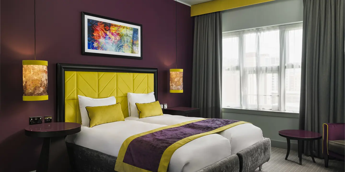 Spacious twin room with stunning views of the 'Winking eye' Millennium Bridge, complete with two single beds and en-suite with shower over bath. Two's company even if it's purely platonic or strictly corporate.